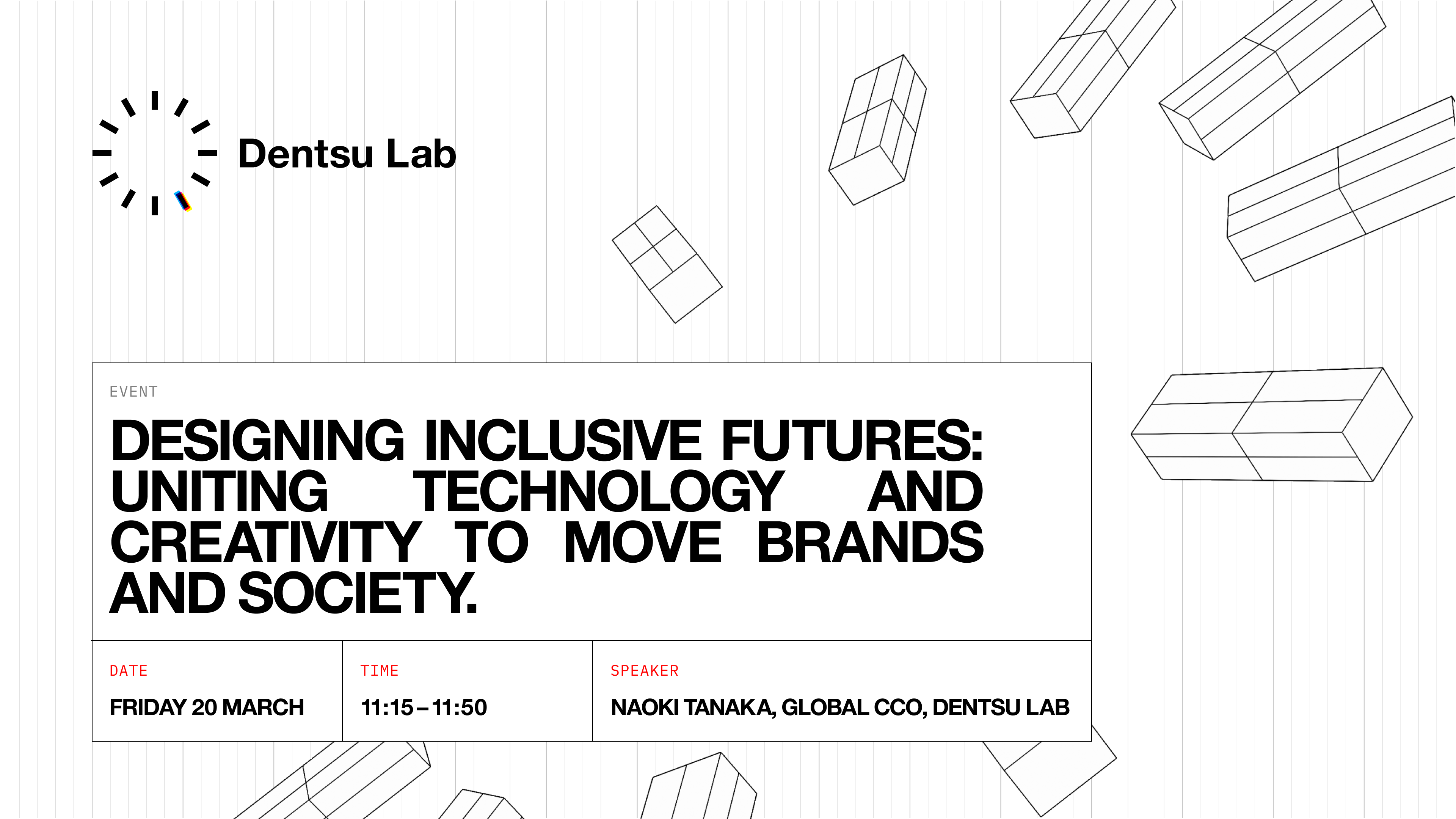 Showcasing Dentsu Lab’s mission and vision that fuses creativity with advanced technology, Naoki will deep dive into Waves of Will, with a particular focus on the brainwave based interface that enables a performer to express herself through a digital body. Attendees will gain rare insight into the technical, creative, and ethical journey of building truly human first technology, demonstrating how the creative industry can lead in building systems that allow more people to participate in, perform within, and shape culture.